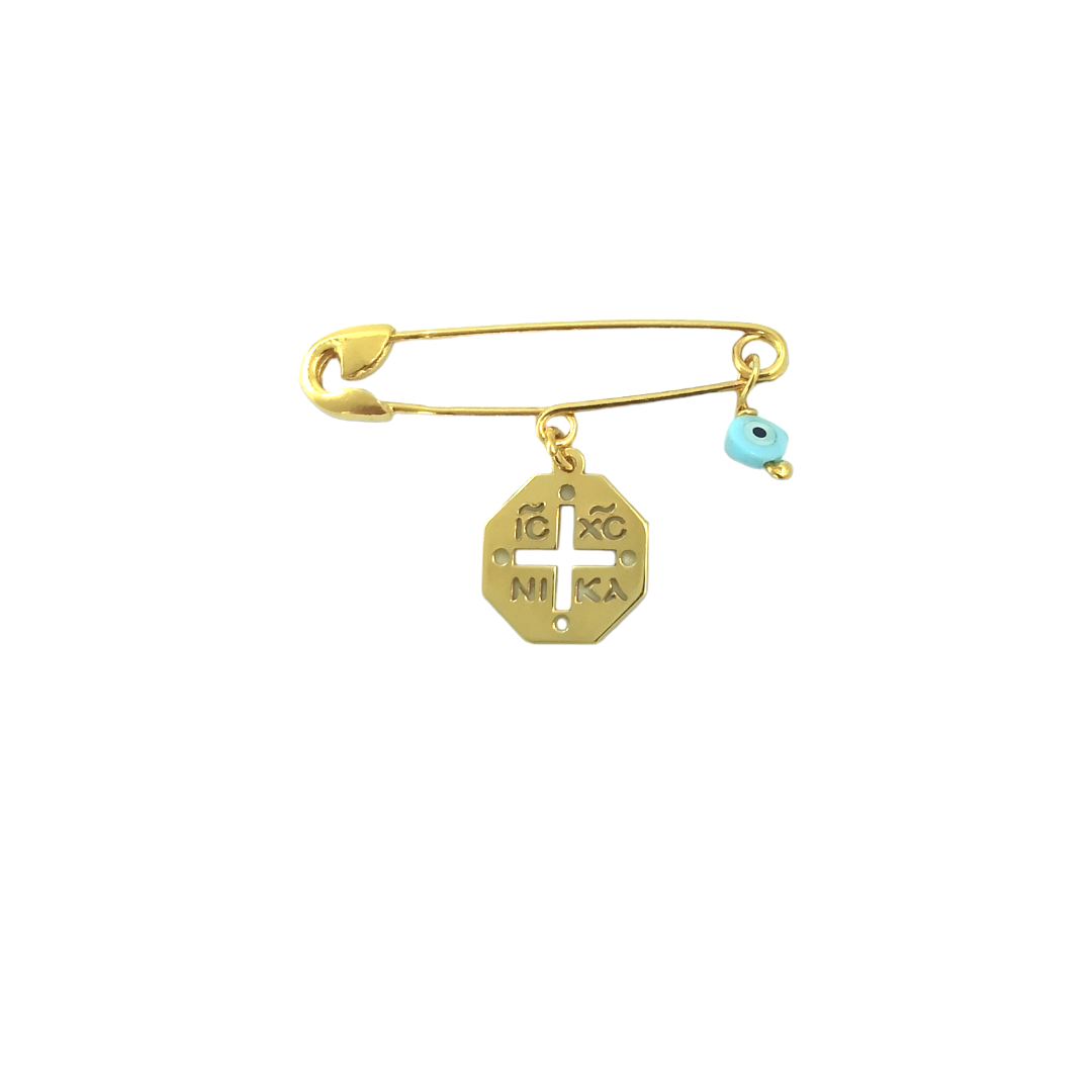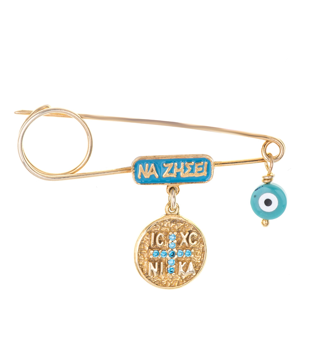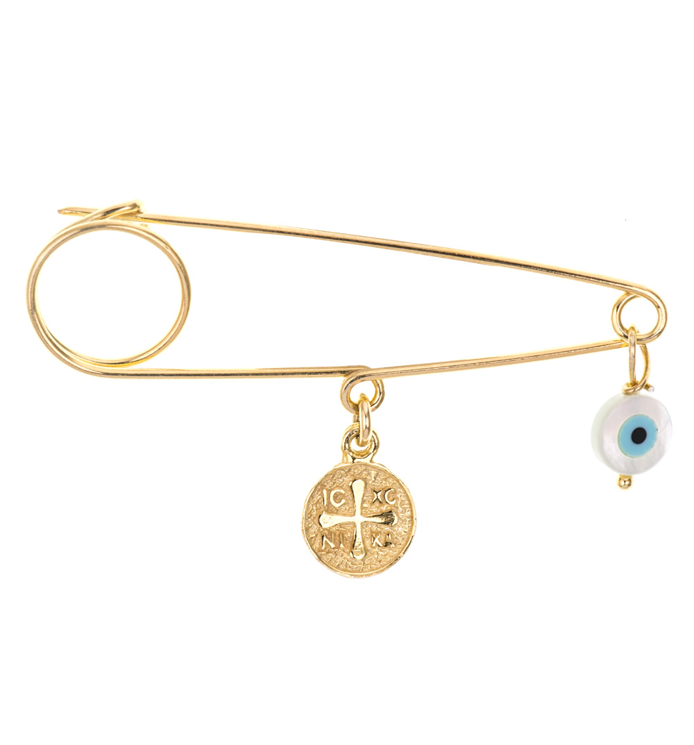 Ασημένια παραμάνα 925° σε χρυσό χρώμα με Κωνσταντινάτο και ματάκι