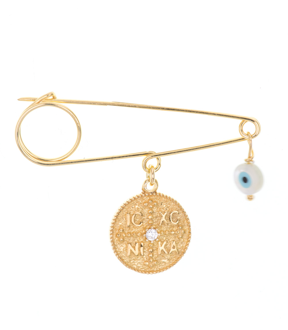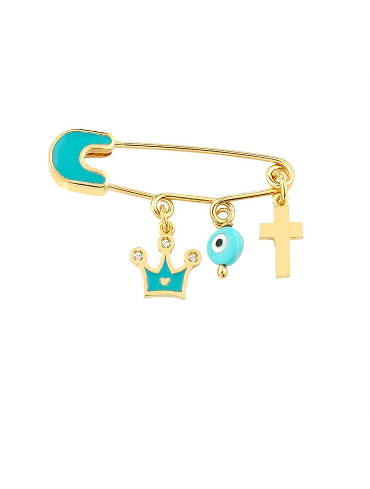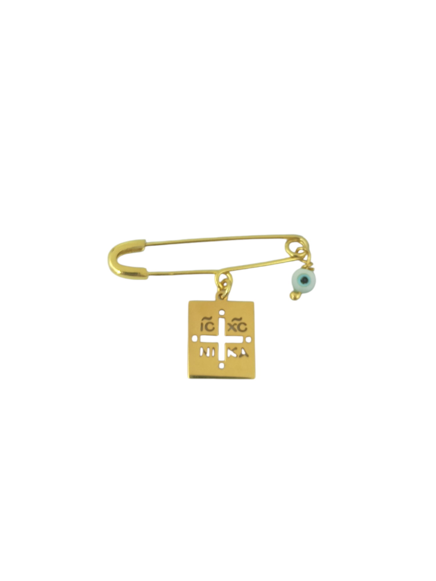 Ασημένια παραμάνα 925° σε χρυσό χρώμα με Κωνσταντινάτο και ματάκι