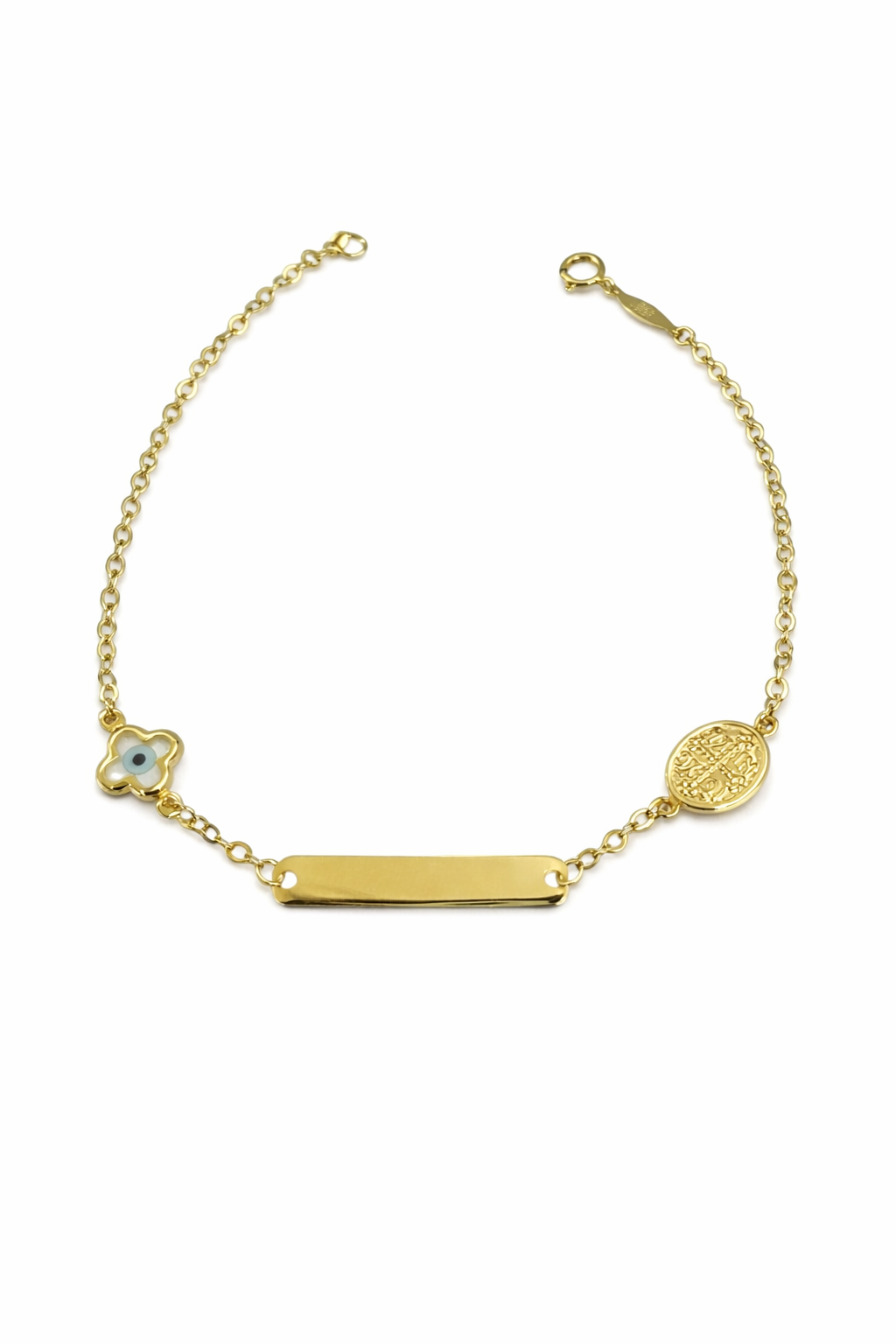 Ταυτότητα βραχιόλι χρυσό με Κωνσταντινάτο και ματάκι σε Κ9