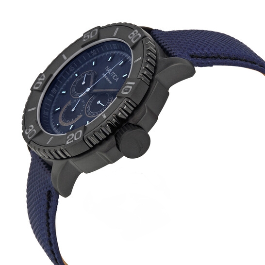NAUTICA Chronograph Black Stainless Steel Blue Leather Strap A18644G