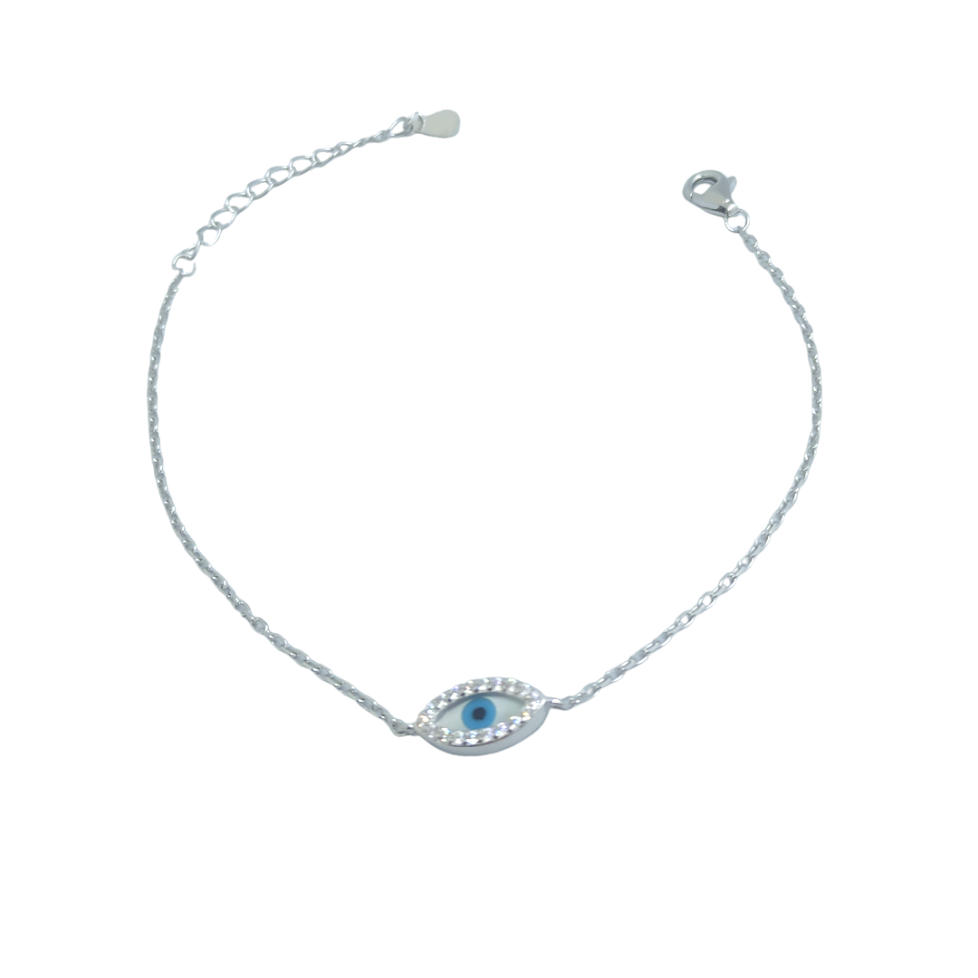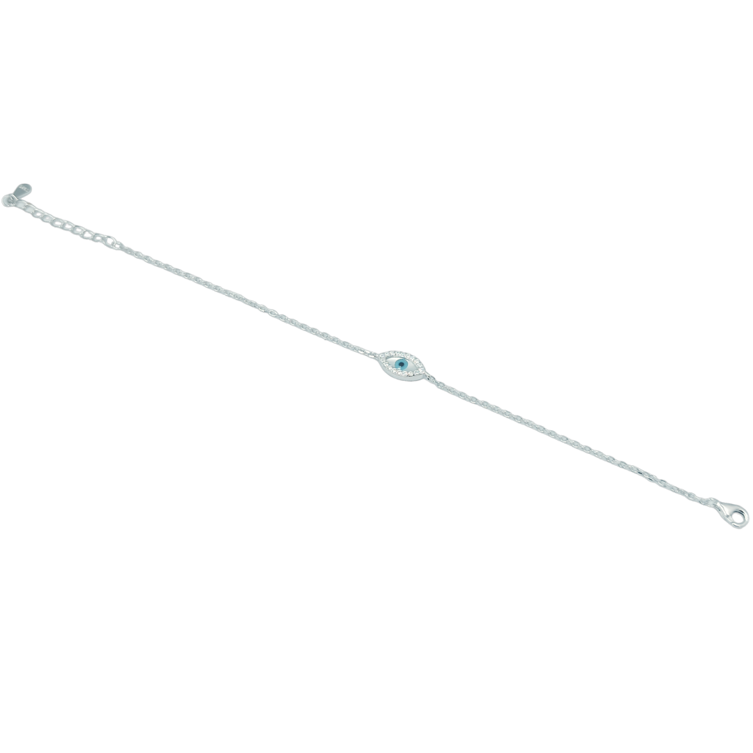 Bραχιόλι με αλυσίδα από ασήμι 925° μάτι με φίλντισι και λευκά ζιργκόν περιμετρικά , μήκος βραχιολιού 15-18,5εκ με προέκταση.