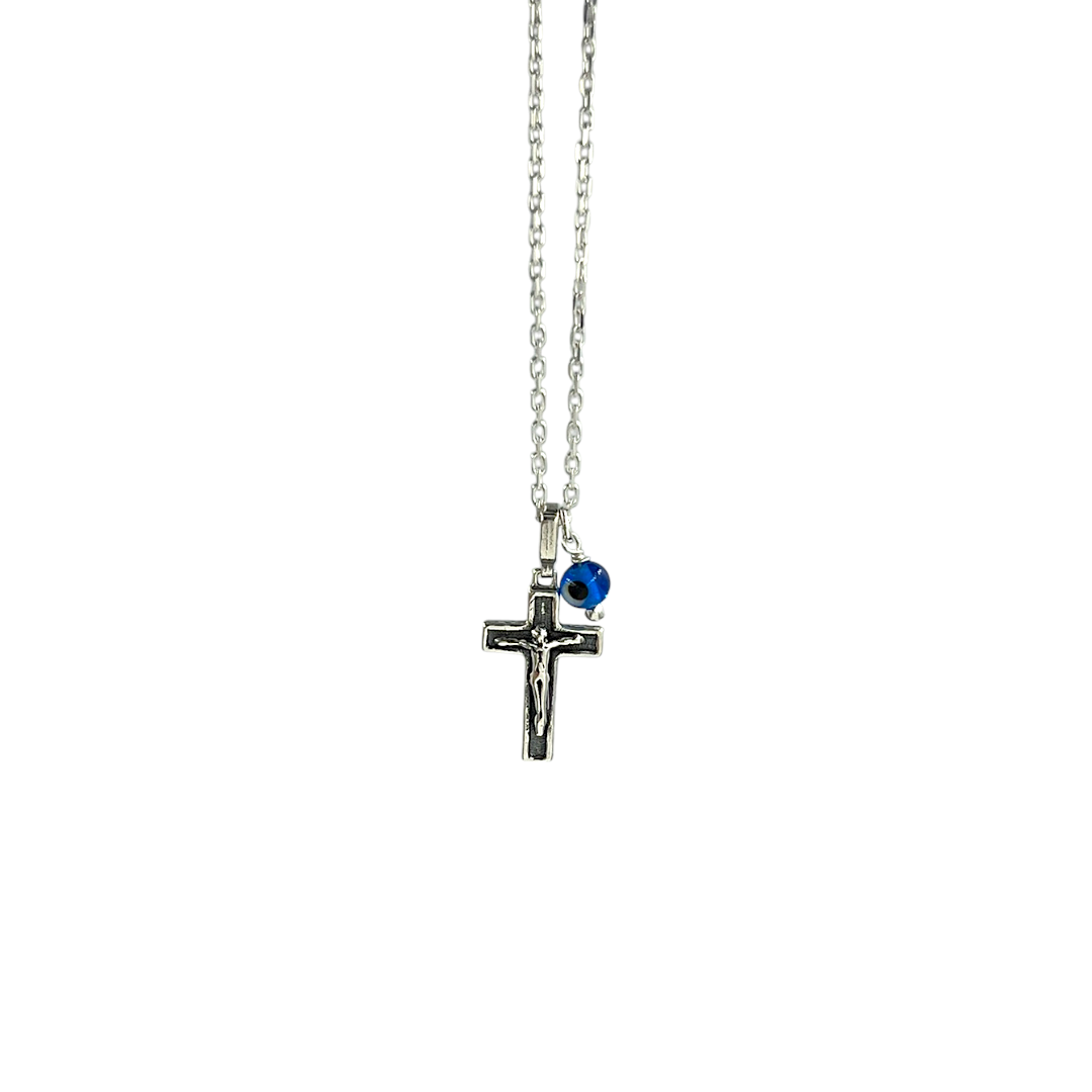 Ασημένιο 925° επιπλατινωμένο γούρι αυτοκινήτου αλυσίδα με μάτι και εσταυρωμένο. Μια εξαιρετική επιλογή για άντρα ή για γυναίκα. Κρεμάστε το στο δικό σας ή χαρίστε το ,ιδανικό δώρο για νέο αμάξι.
