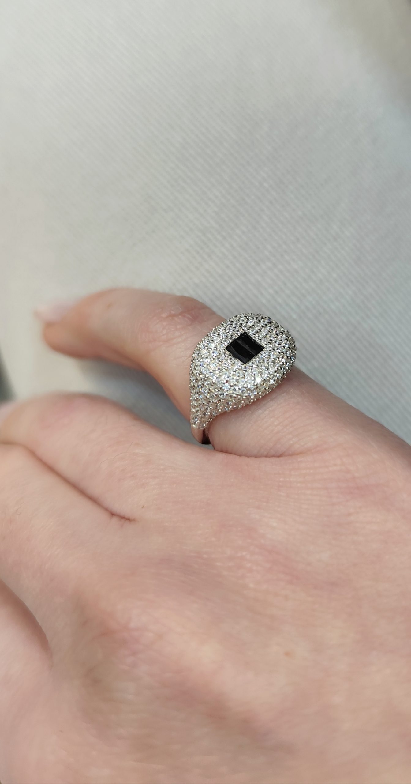 Δαχτυλίδι από ασήμι 925° στολισμένο με λευκά ζιργκόν σε όλη την επιφάνεια και μαύρα στο κέντρο, ιδανικό κόσμημα και για το μικρό δάχτυλο.