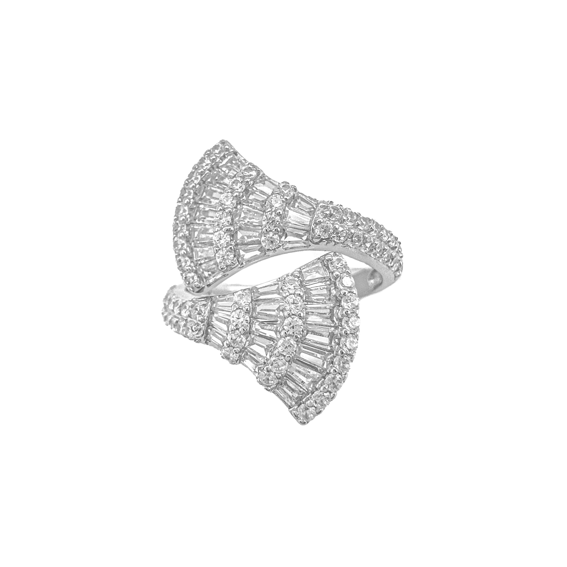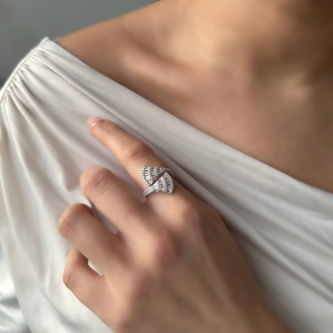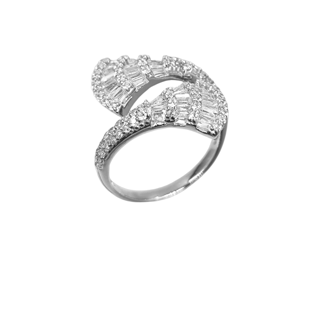 Δαχτυλίδι από ασήμι 925° σε ιδιαίτερο σχέδιο με λευκά ζιργκόν και πέτρες σε κοπή μπαβέτ, ένα πολύ κομψό δαχτυλίδι θα σας συνοδεύει καθημερινά.