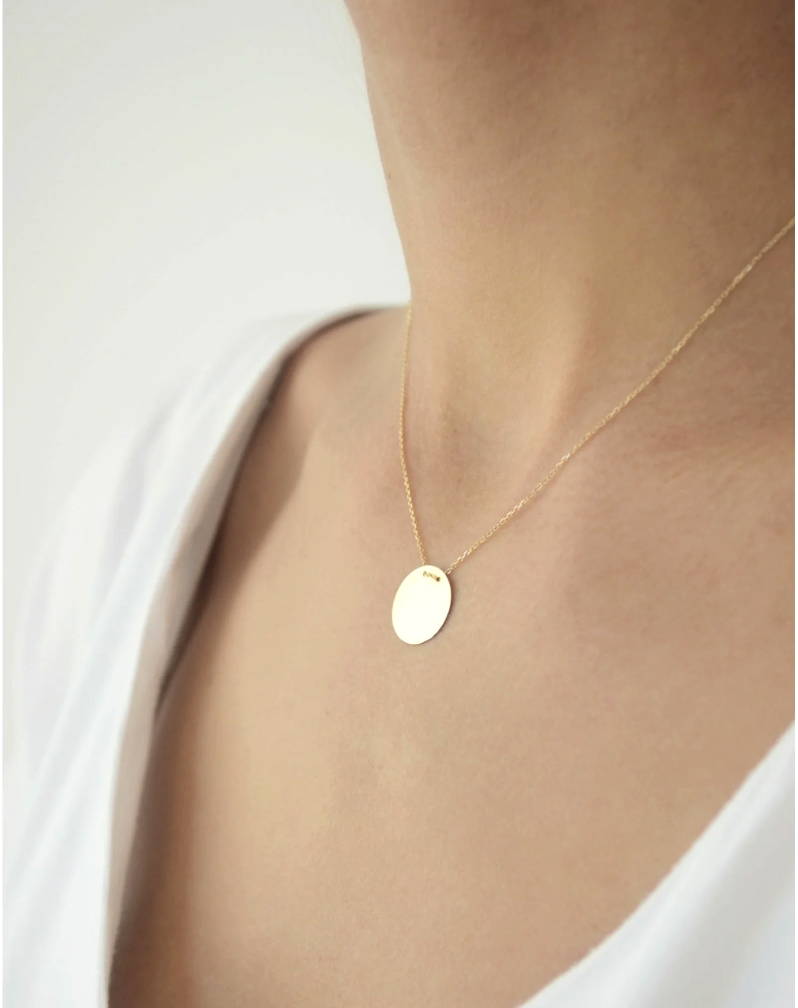 Κολιέ από χρυσό 14 καρατίων με μοτίφ σε σχήμα κύκλου λουστρέ που υπάρχει η δυνατότητα χάραξης,ένα πολύ όμορφο κόσμημα για κάθε γυναίκα.