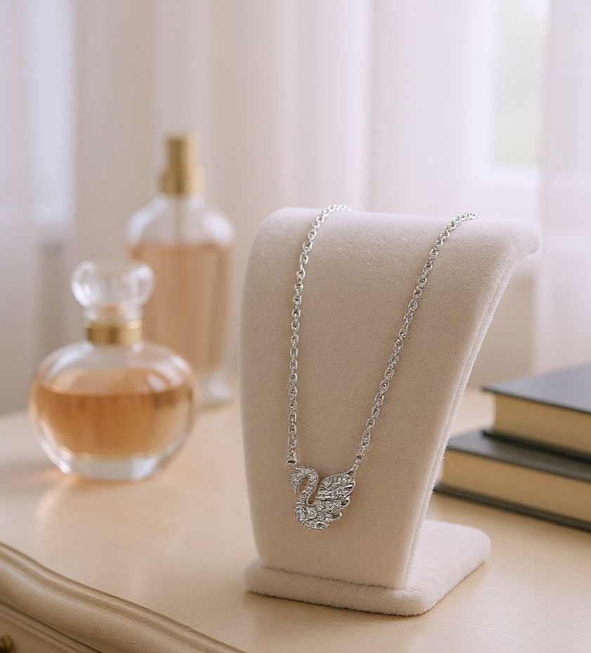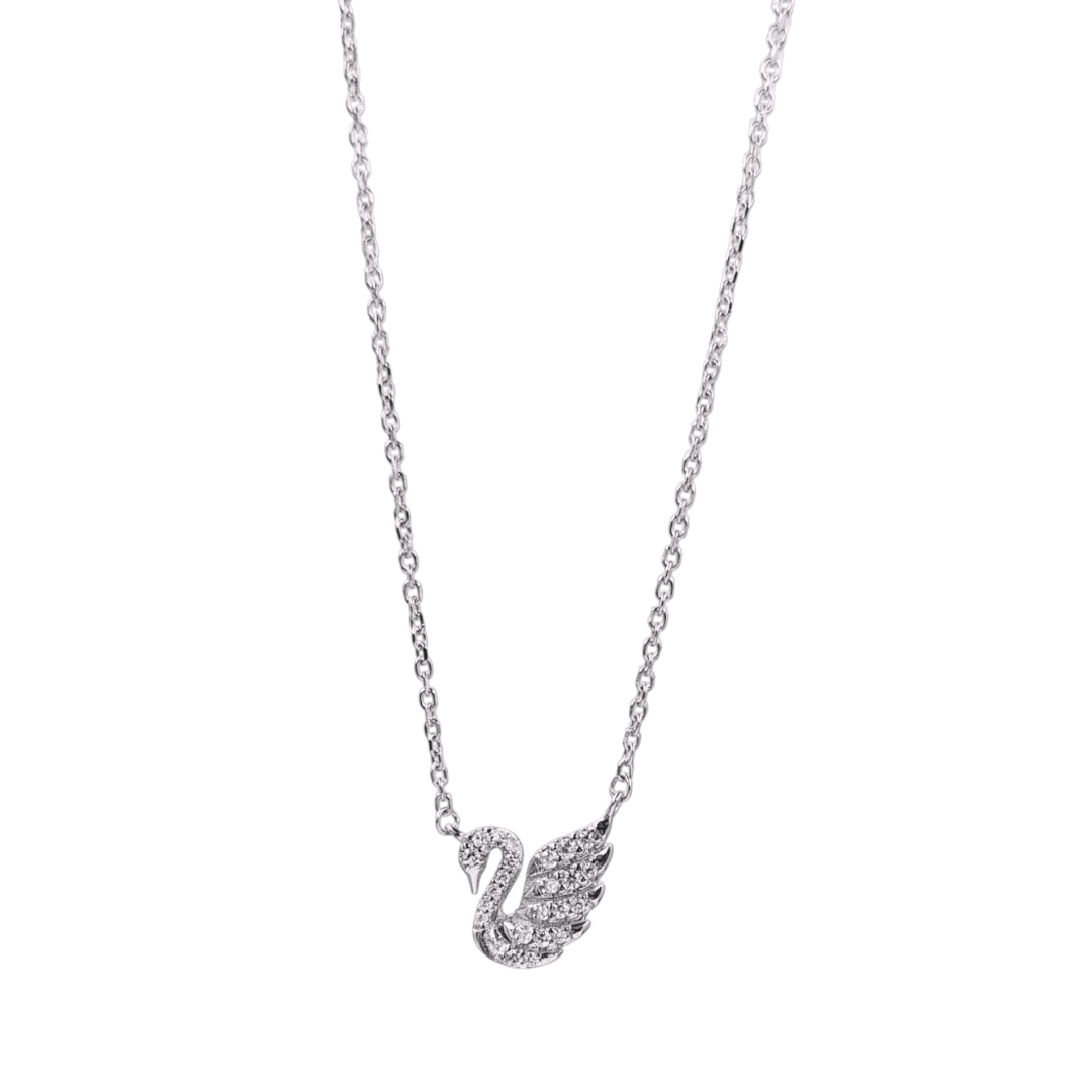 Κολιέ με κύκνο διακοσμημένο με λευκά ζιργκόν σε όλη την επιφάνεια από ασήμι 925°.
