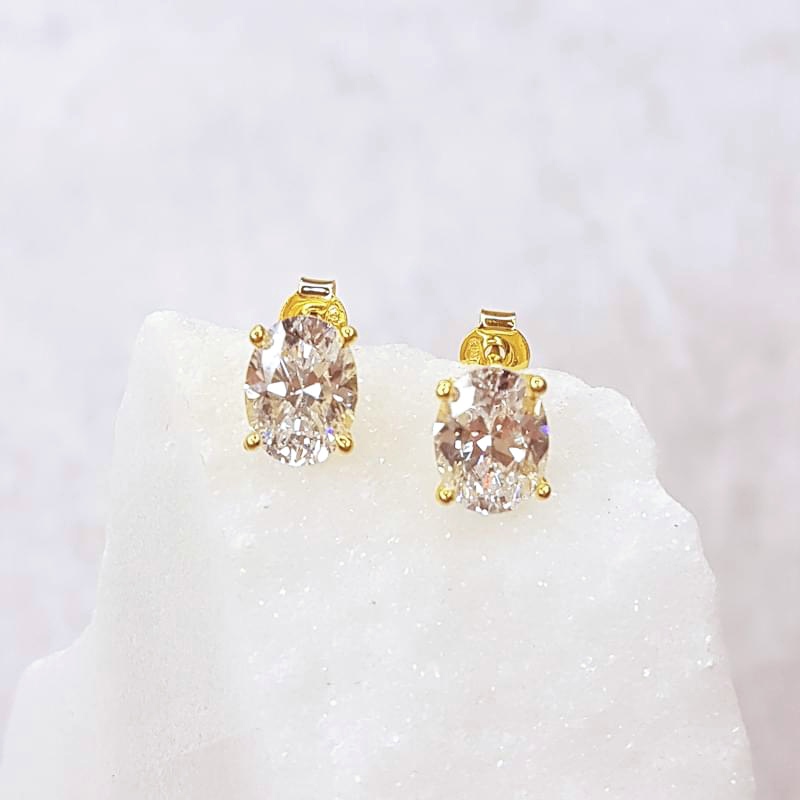 Σκουλαρίκια οβάλ μονόπετρα σε χρυσό από ασήμι 925°