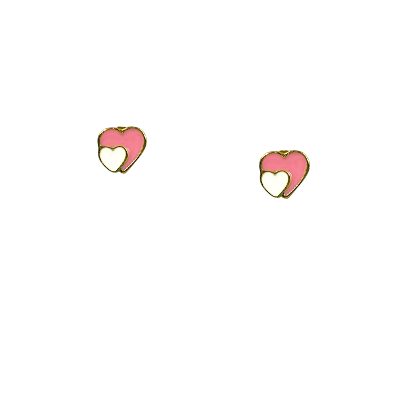 Παιδικά σκουλαρίκια από ασήμι 925° επιχρυσωμένα διακοσμημένα με καρδιές από σμάλτο σε λευκό και ροζ χρώμα.