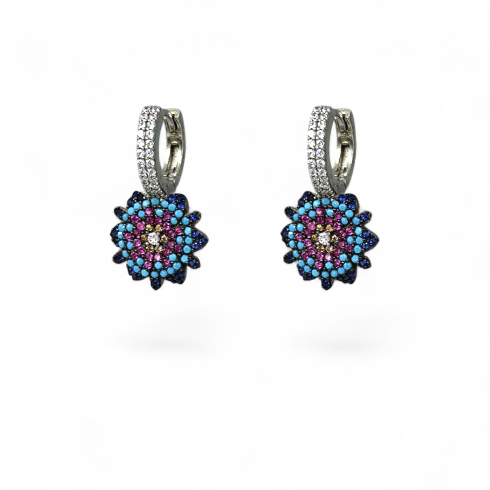 Κρεμαστά κρικάκια σκουλαρίκια με ιδιαίτερο σχέδιο στο κάτω μέρος με χρωματιστά ζιργκον, από ασήμι 925