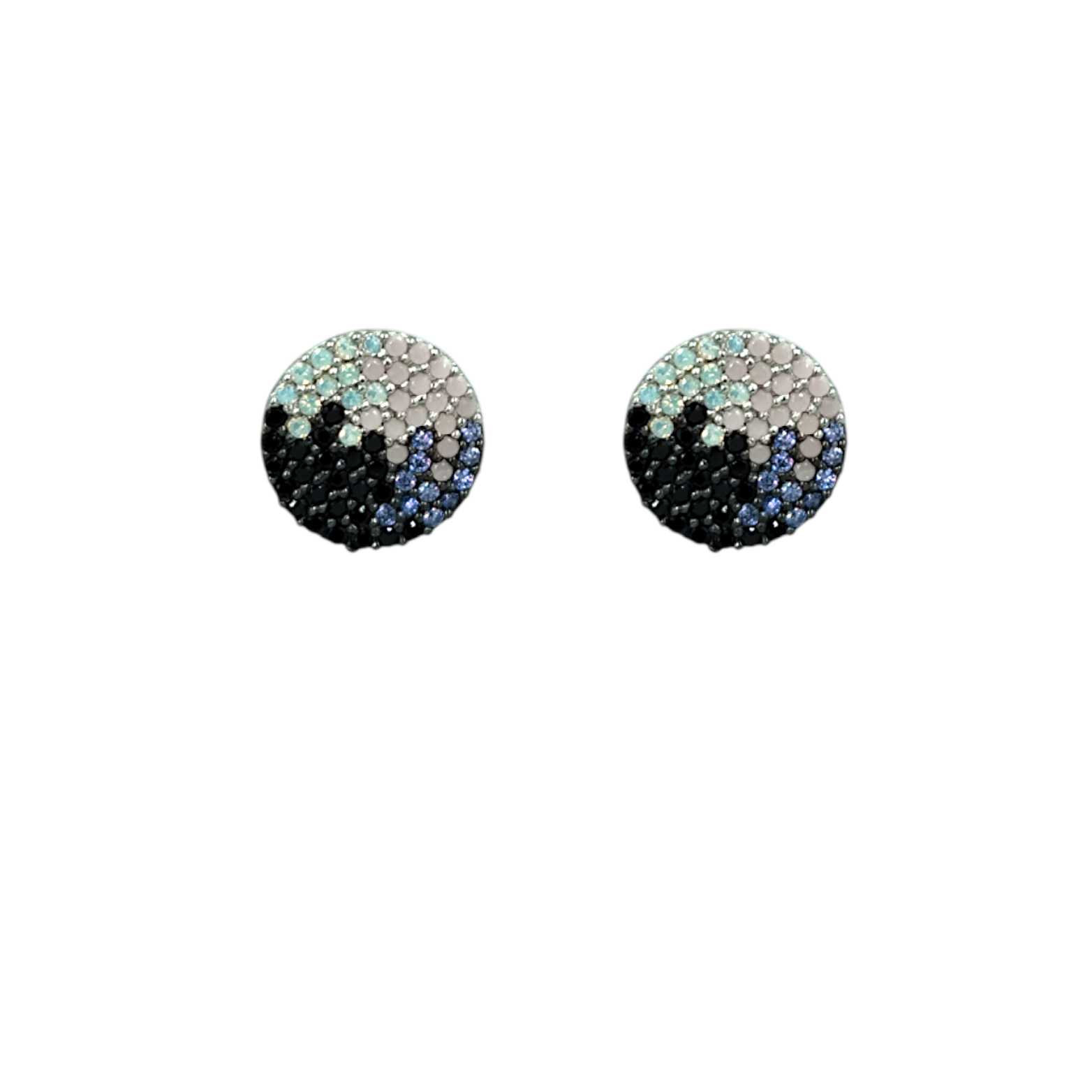 Σκουλαρίκια σε στρογγυλό σχήμα με λευκά,ροζ,λιλά και μαύρα ζιργκόν από ασήμι 925