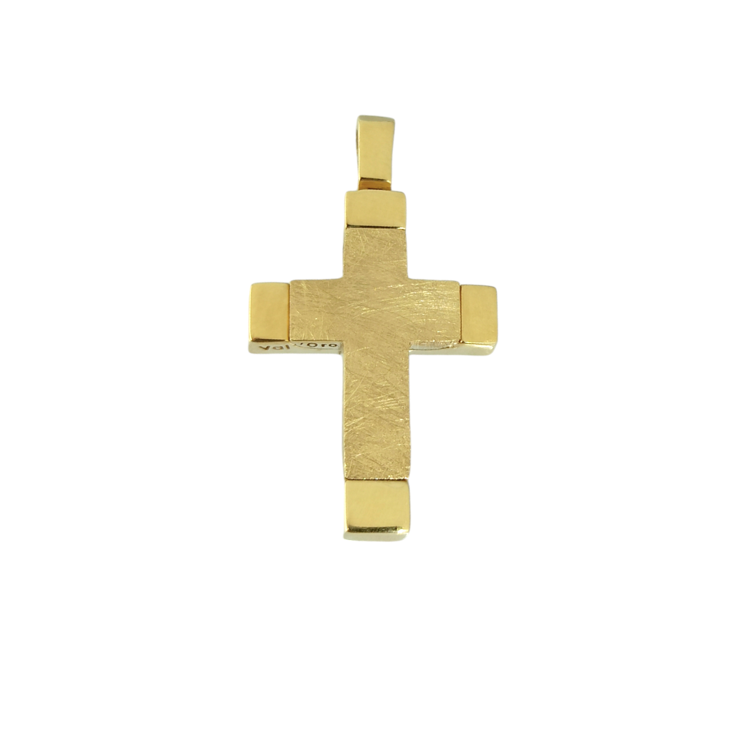 Σταυρός Val’ Oro διπλής όψης με σαγρέ και λουστρέ φινίρισμα σε 14 καράτια