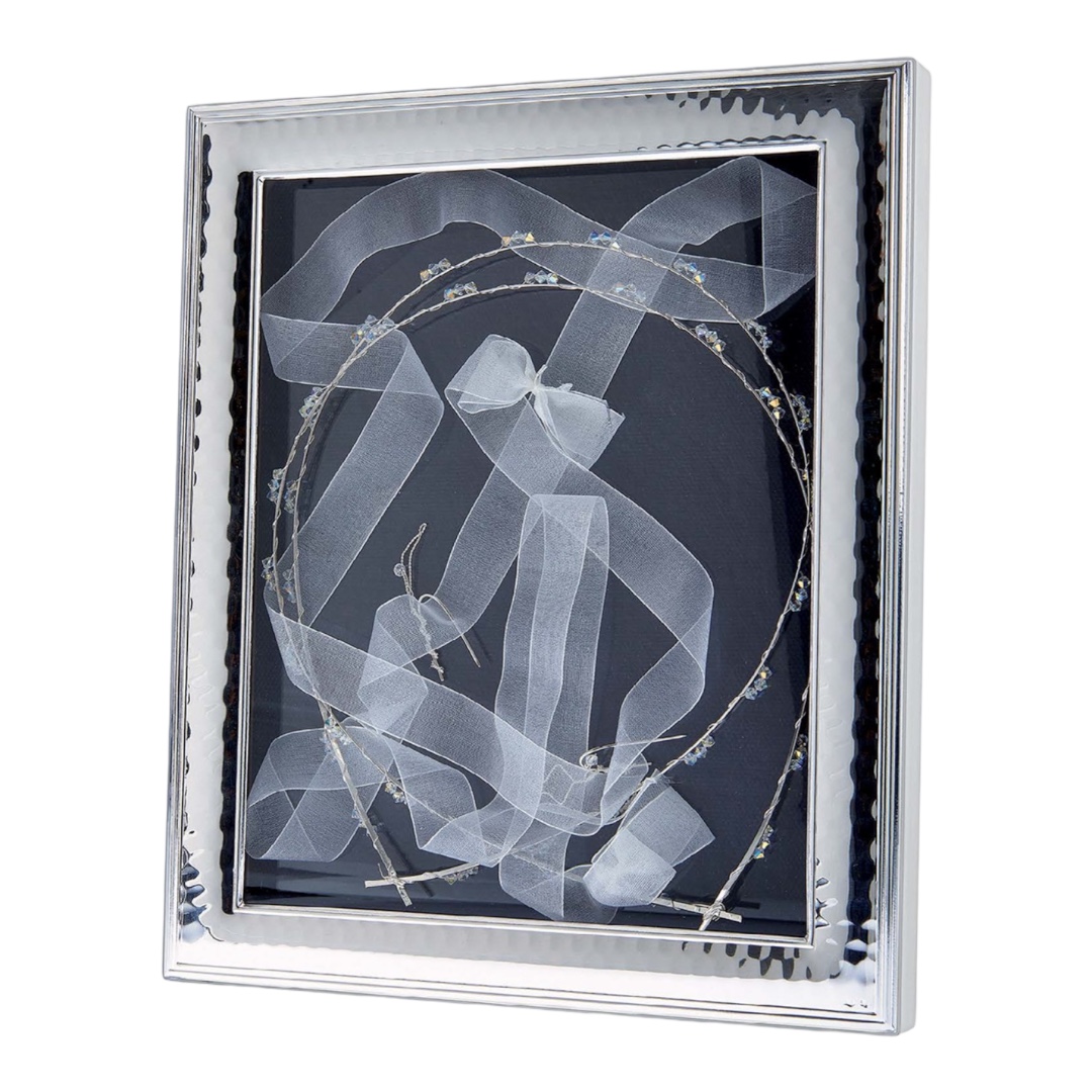 Ασημένια στεφανοθήκη 925°, με λευκή ξύλινη πλάτη διατίθεται και σε καφέ ξύλινη πλάτη ,ιδανικό δώρο για νεόνυμφους, σε συσκευασία δώρου.