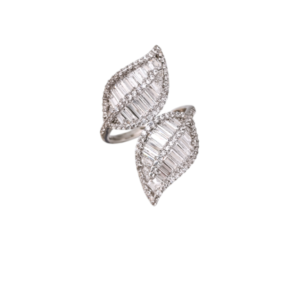 Δαχτυλίδι baguette leaf με λευκά ζιργκόν μπαβέτ από ασήμι 925°
