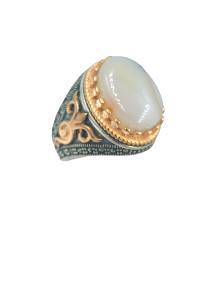 Ανδρικό ΔΑΧΤΥΛΙΔΙ βυζαντινό από ασήμι 925° δίχρωμο με αχάτη