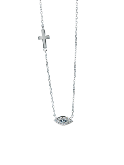 Κολιέ blue eye cross από ασήμι 925°