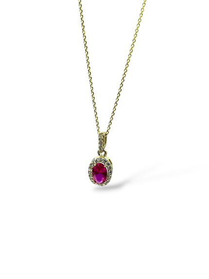 Κολιέ χρυσό Adine ροζέτα με κόκκινη πέτρα οβάλ σε Κ9