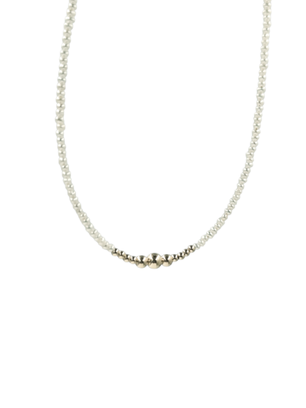 Κολιέ χρυσό pearls and dots με μαργαριτάρια και μπίλιες σε Κ14