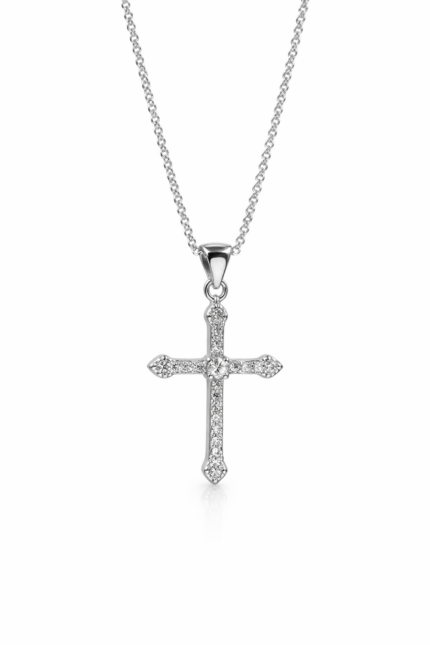 Κολιέ σταυρός με πέτρες ζιργκόν από ασήμι 925°