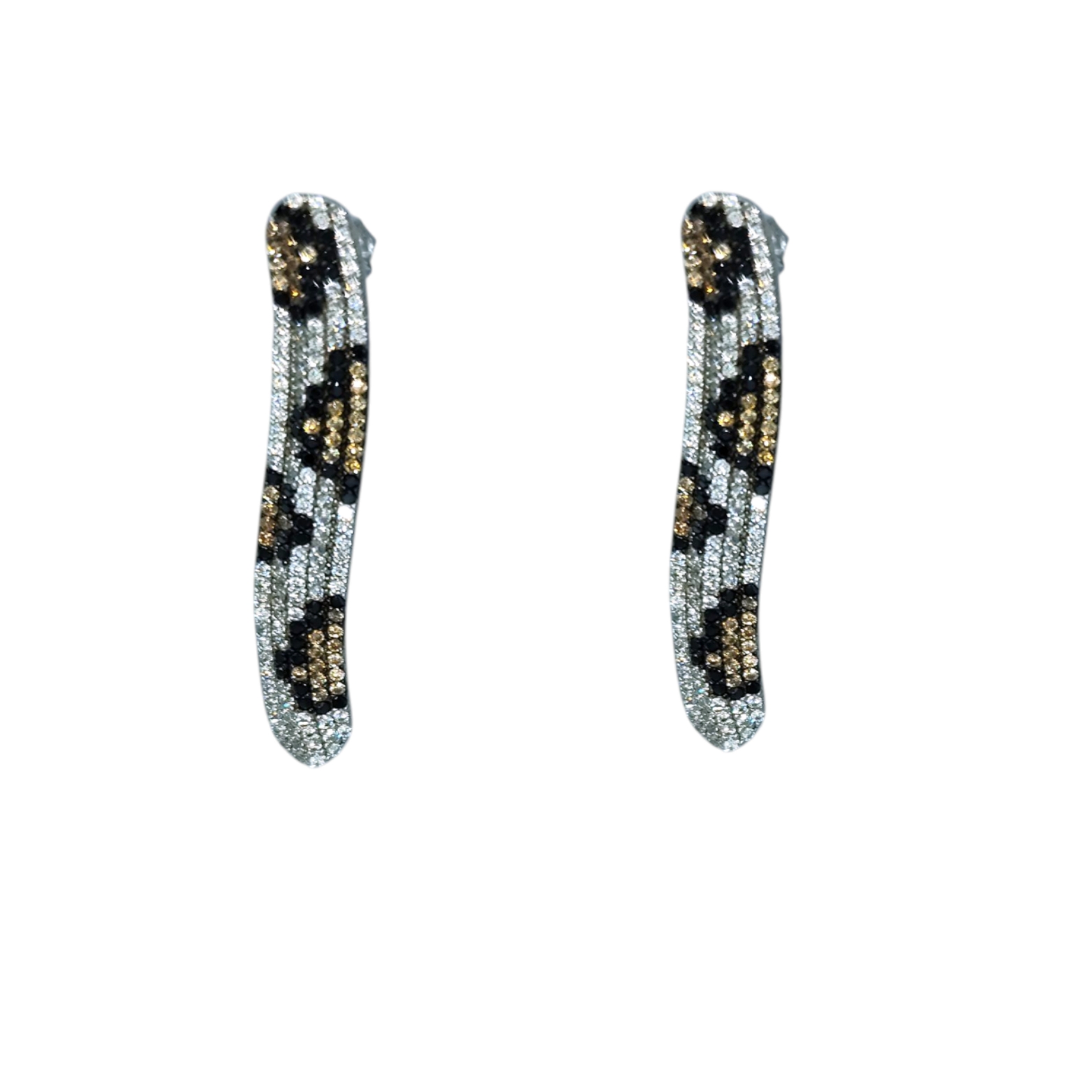 Εντυπωσιακά σκουλαρίκια σε λεοπάρ σχέδιο με λευκές, μαύρες και μπεζ πέτρες ζιργκον, για ιδιαίτερες εμφανίσεις από ασήμι 925°