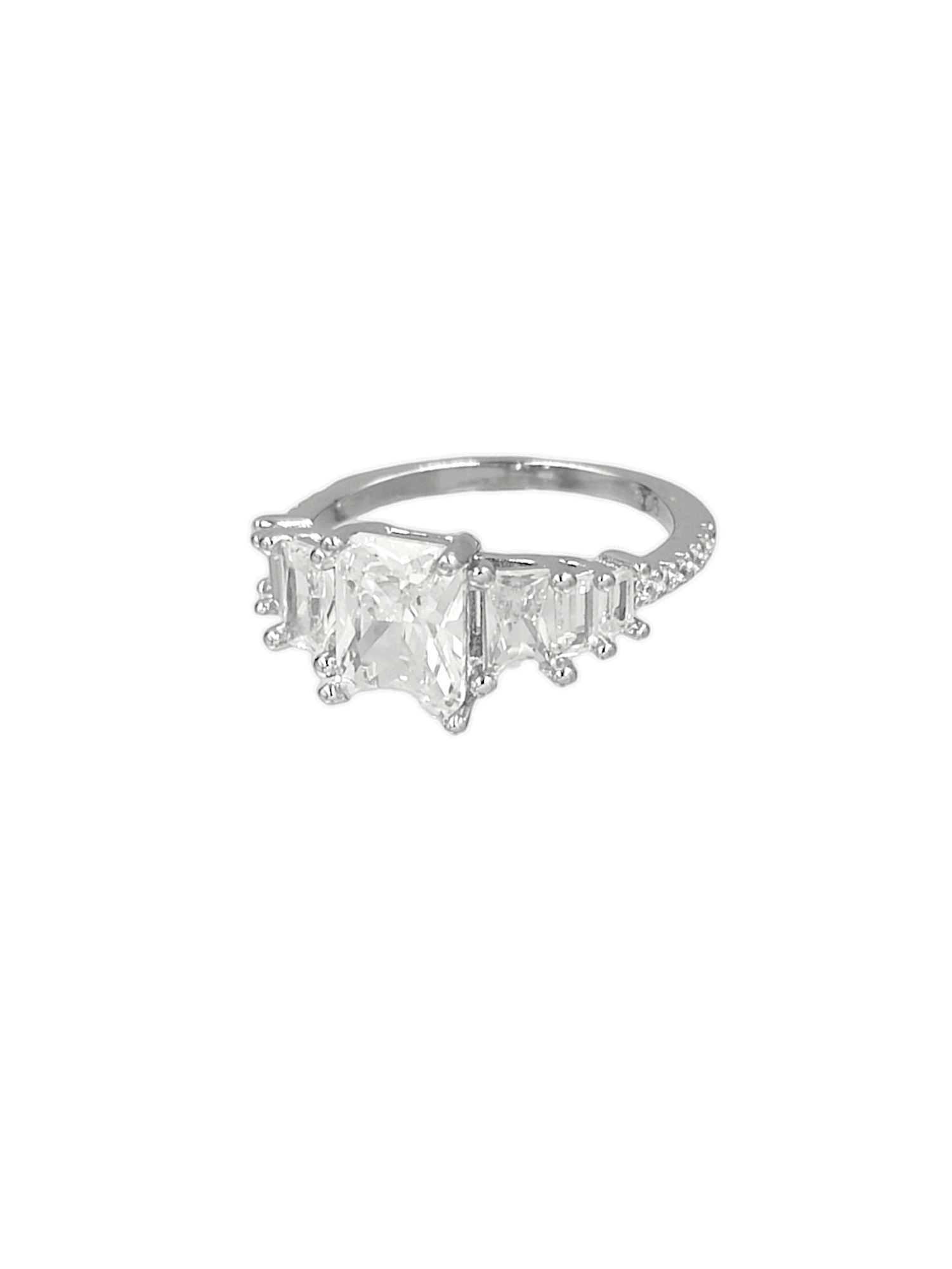 Δαχτυλίδι από επιπλατινωμένο ασήμι 925° με πέτρα ζιργκόν μπαβέτ στο κέντρο και μικρές πλαϊνές.