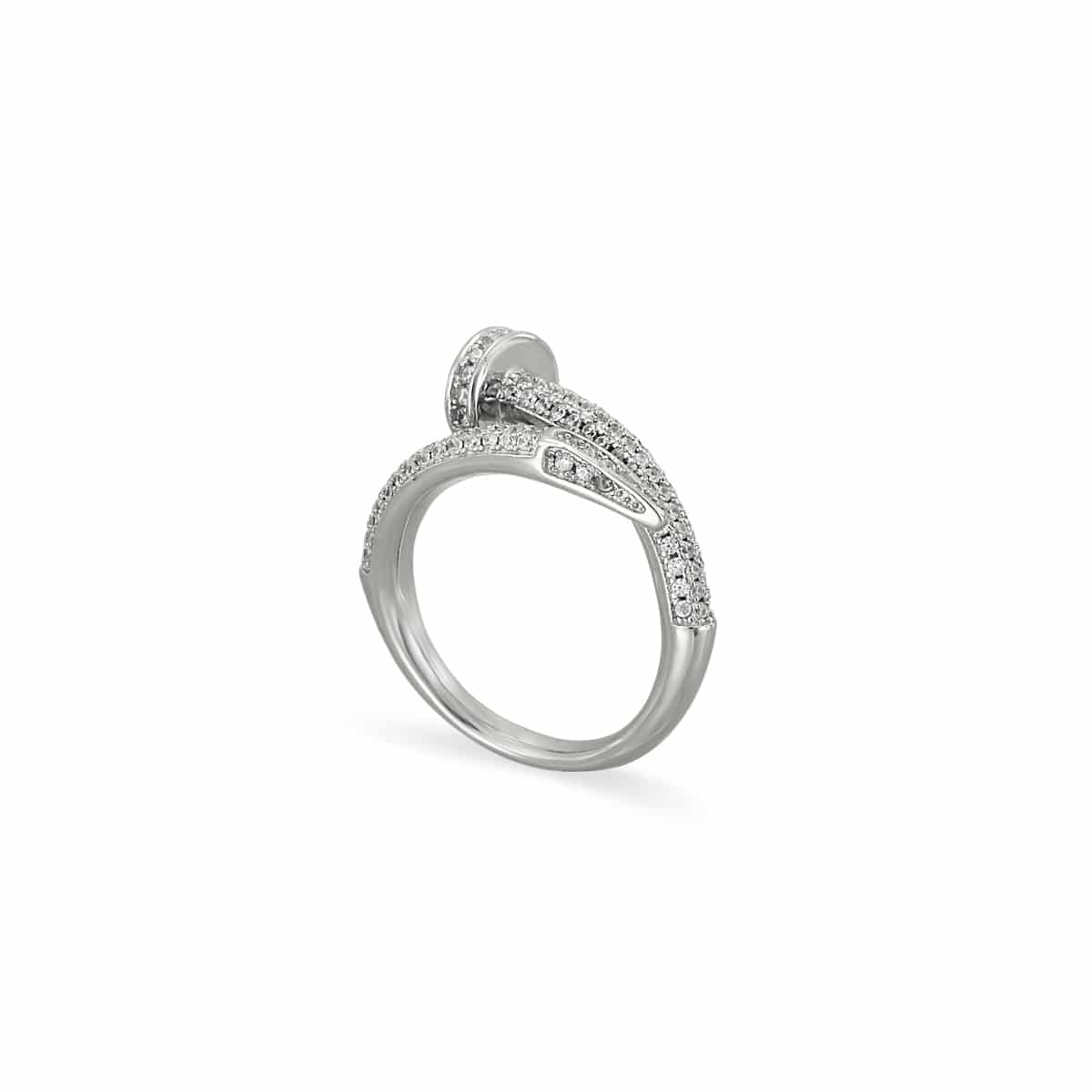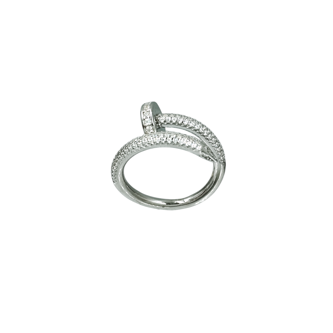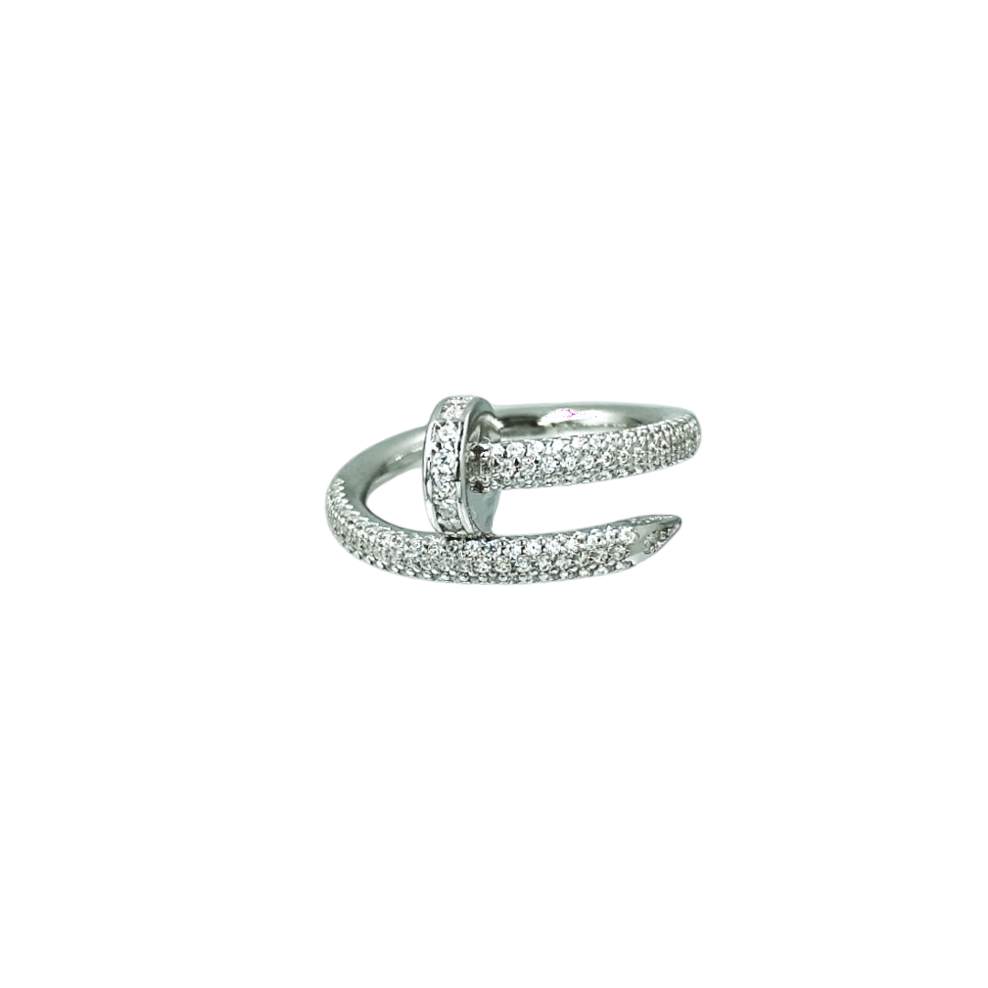 Δαχτυλίδι από ασήμι 925° σε σχέδιο καρφί διακοσμημένο με λευκά ζιργκόν. Ένα μοντέρνο δαχτυλίδι που θα σας συνοδεύει σε κάθε σας εμφάνιση.