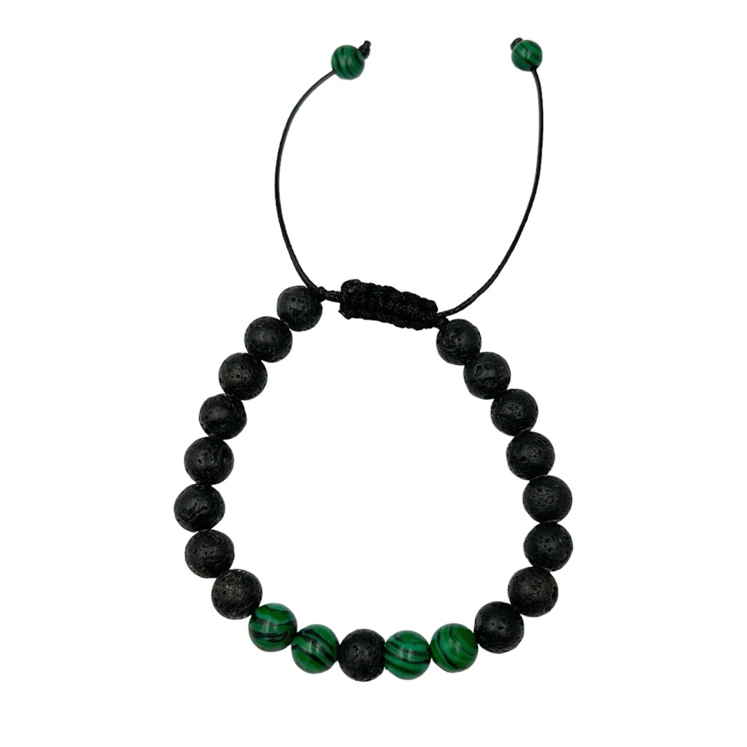 Βραχιόλι μακραμέ με πέτρες Λάβας και μαλαχίτη