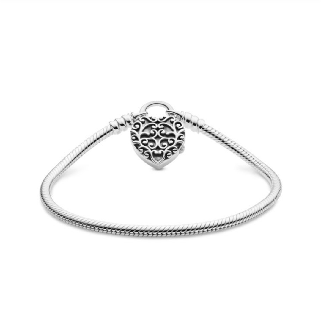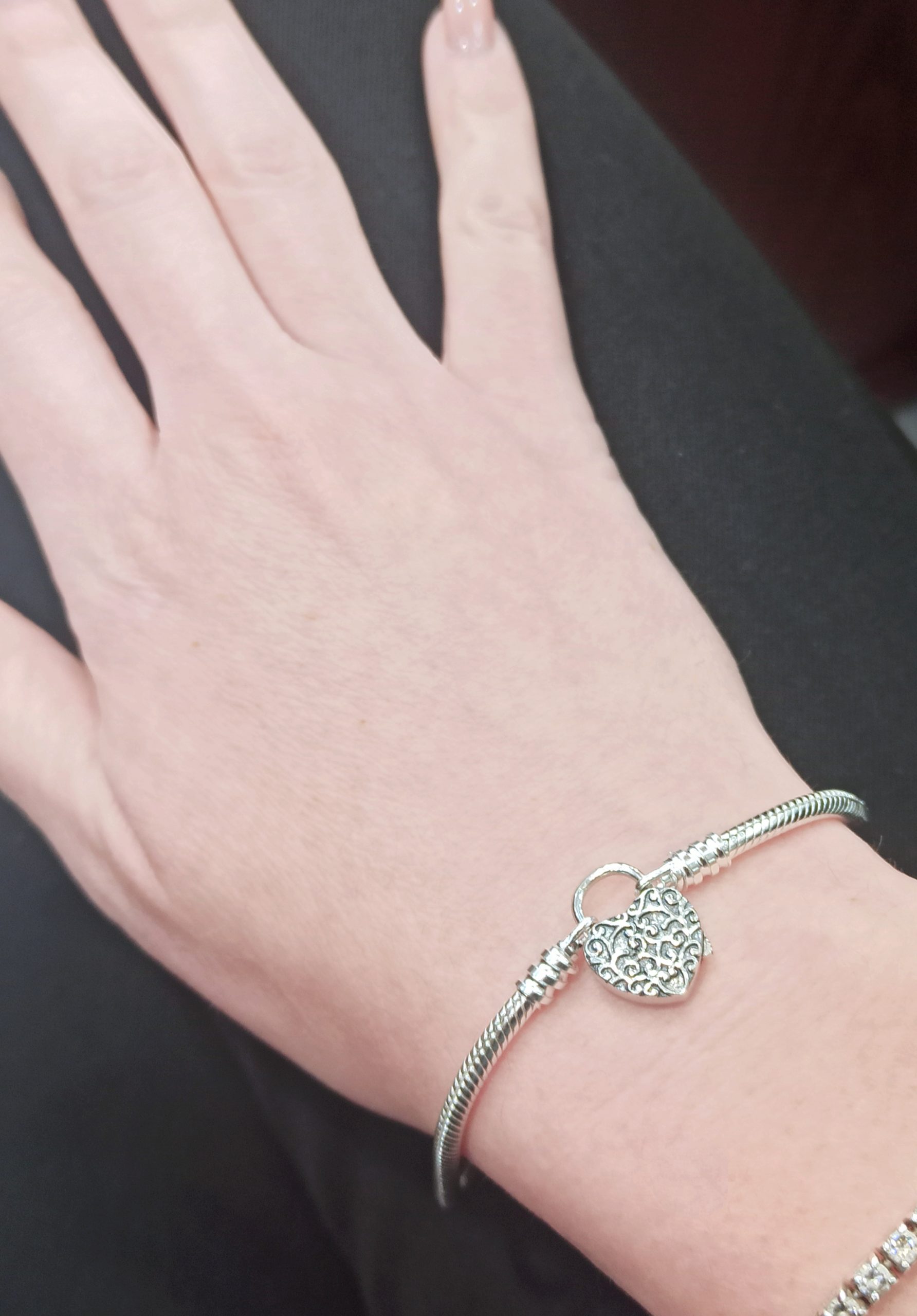 Βραχιόλι με καρδιά λουκέτο από επιπλατινωμένο ασήμι 925