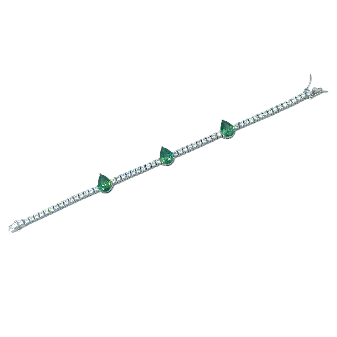 Μία εντυπωσιακή ριβιέρα κόσμημα κατασκευασμένη από ασήμι 925° με μοτίβο αποτελούμενο από πράσινες πέτρες ζιργκόν σε σχήμα σταγόνας και λευκά μικρότερα ζιργκόν σε στρογγυλό σχήμα. Μήκος βραχιολιού 18εκ με κούμπωμα ασφαλείας. Ένα κόσμημα που θα σας κάνει να ξεχωρίσετε!