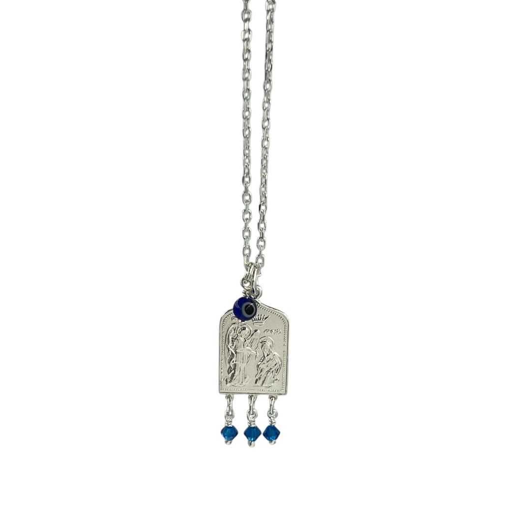 Γούρι αυτοκινήτου από ασήμι 925° , αλυσίδα με κρεμαστό μάτι και εικόνα διπλής όψεως με τον Άγιο Χριστόφορο, προστάτη των οδηγών και τον Ευαγγελισμό της Θεοτόκου. Μια εξαιρετική επιλογή για άντρα ή για γυναίκα. Κρεμάστε το στο δικό σας ή χαρίστε το ,ιδανικό δώρο για νέο όχημα.