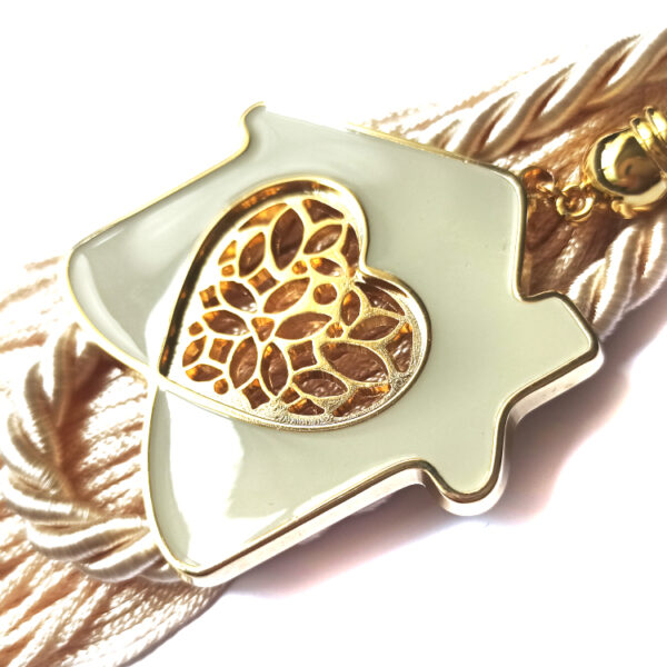 Γούρι κρεμαστό εκρού με σπίτι από σμάλτο, με χρυσές λεπτομέρειες , και εκρού κορδόνι άριστης ποιότητας, για να υποδεχθείτε το νέο έτος!