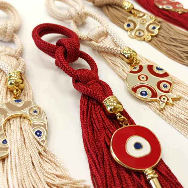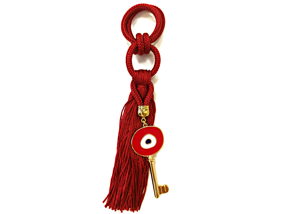 Γούρι κρεμαστό από ορείχαλκο κόκκινο με κλειδί μάτι και κόκκινη φούντα άριστης ποιότητας, για να υποδεχθείτε το νέο έτος!