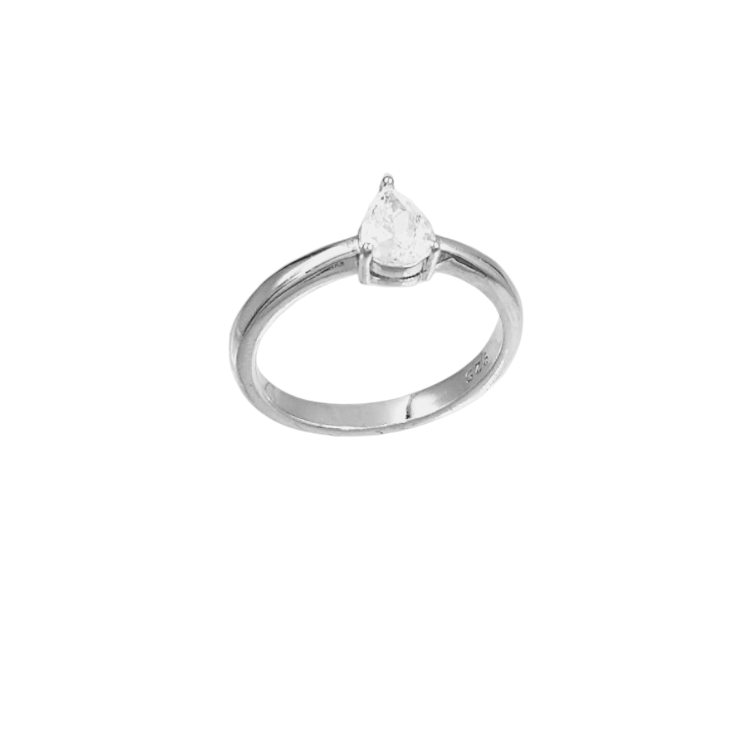 Δαχτυλίδι από ασήμι 925° με λευκή πέτρα σε σχήμα σταγόνας στο κέντρο, εξαιρετική ποιότητα κατασκευής σε ένα διαχρονικό κόσμημα.