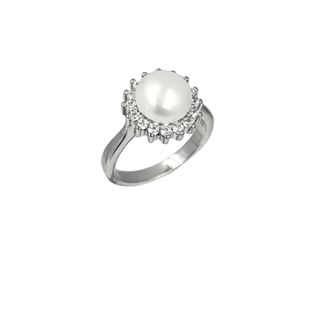 Αποπνεύστε κομψότητα και φινέτσα με το δαχτυλίδι white breeze από ασήμι 925°, που συνδυάζει τη διαχρονική γοητεία του μαργαριταριού με τη λάμψη των λευκών ζιργκόν. Η πέρλα, στολισμένη με στεφάνι από αστραφτερές πέτρες, δημιουργεί ένα αποτέλεσμα απόλυτης κομψότητας, ιδανικό για βραδινές εξόδους αλλά και ως διαχρονικό δώρο αγάπης και εκτίμησης.