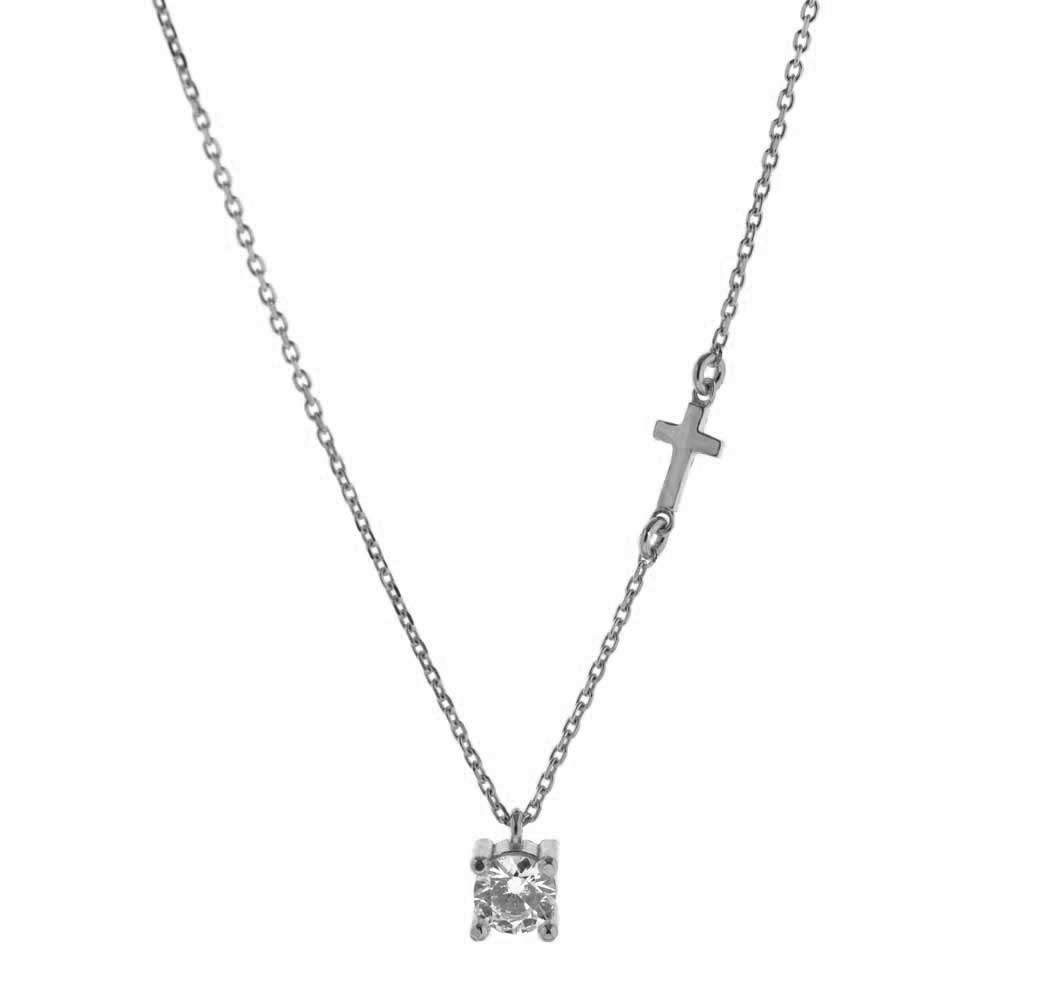Κολιέ Μονόπετρο με σταυρό από ασήμι 925°