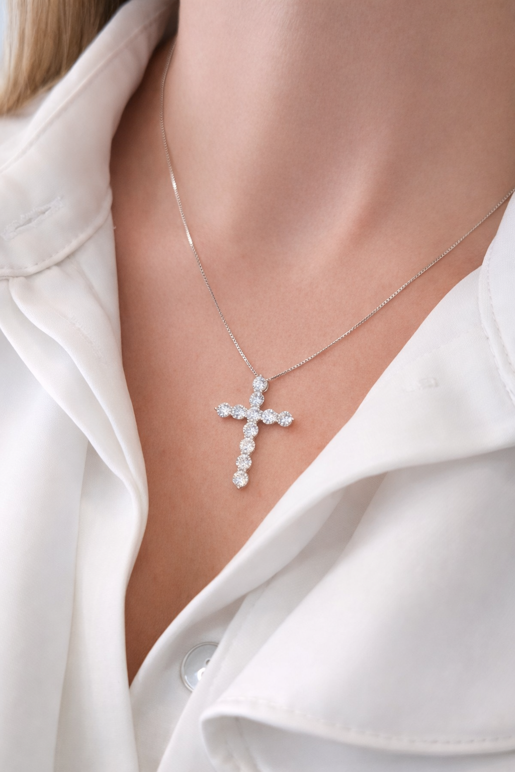 Κολιέ με αλυσίδα από ασήμι 925° με σταυρό με λευκές πέτρες Μοϊσανίτη .Μήκος αλυσίδας 40-44 εκ.Ύψος σταυρού 3εκ.Ανακαλύψτε τη διαχρονική ομορφιά του μοϊσανίτη, την πιο λαμπερή εναλλακτική του διαμαντιού. Τα κοσμήματα με μοϊσανίτη συνδυάζουν απαράμιλλη φωτεινότητα και εξαιρετική ανθεκτικότητα, κάνοντάς τα την ιδανική επιλογή για κάθε περίσταση. Με μοντέρνα σχέδια και υψηλή ποιότητα, αυτά τα σκουλαρίκια προσφέρουν κομψότητα και αξεπέραστη λάμψη που θα αναδείξουν το στυλ σας σε κάθε σας εμφάνιση.