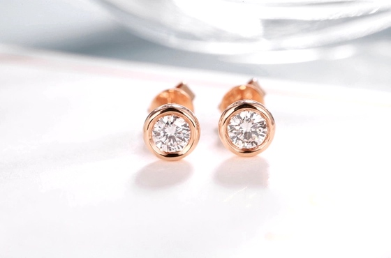 Ροζ χρυσά σκουλαρίκια 14 καράτια με λευκή πέτρα ζιργκόν για καθημερινές εμφανίσεις ,ιδανικά για γυναικείο κόσμημα.