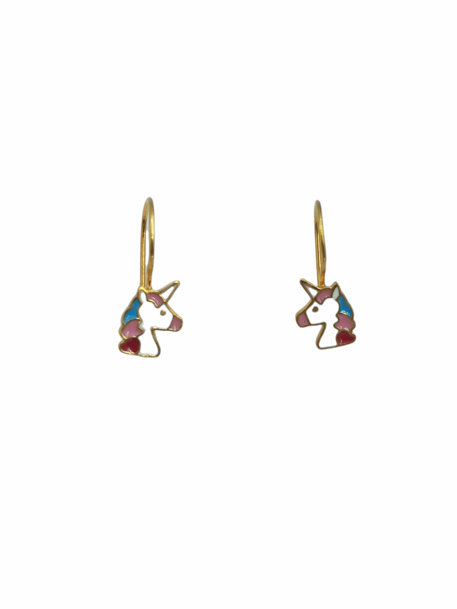 Παιδικά σκουλαρίκια κρεμαστά από ασήμι 925° επιχρυσωμένα διακοσμημένα με unicorn-μονόκερο αλογάκι.