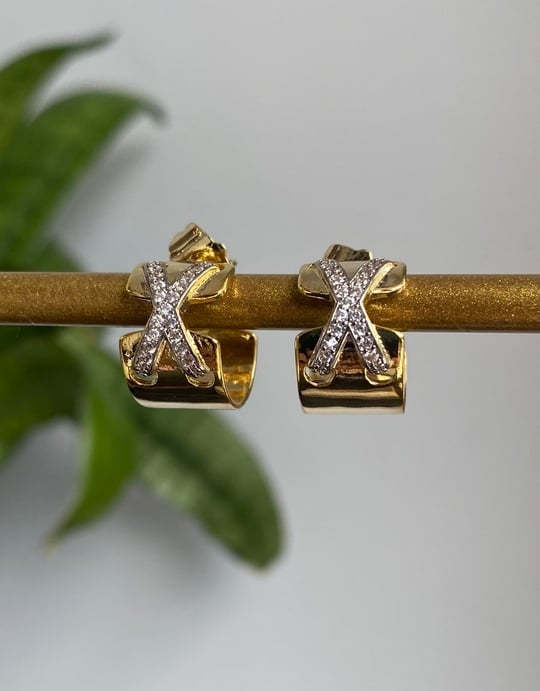 Σκουλαρίκια χρυσά κρικάκια από ασήμι 925°, με σχέδιο με λευκά ζιργκόν.