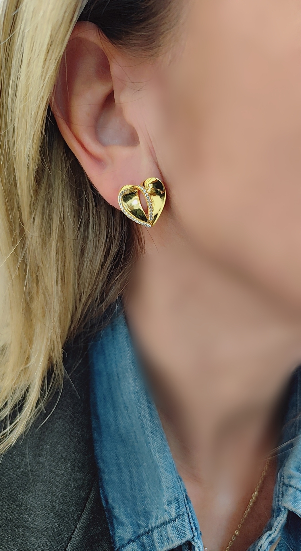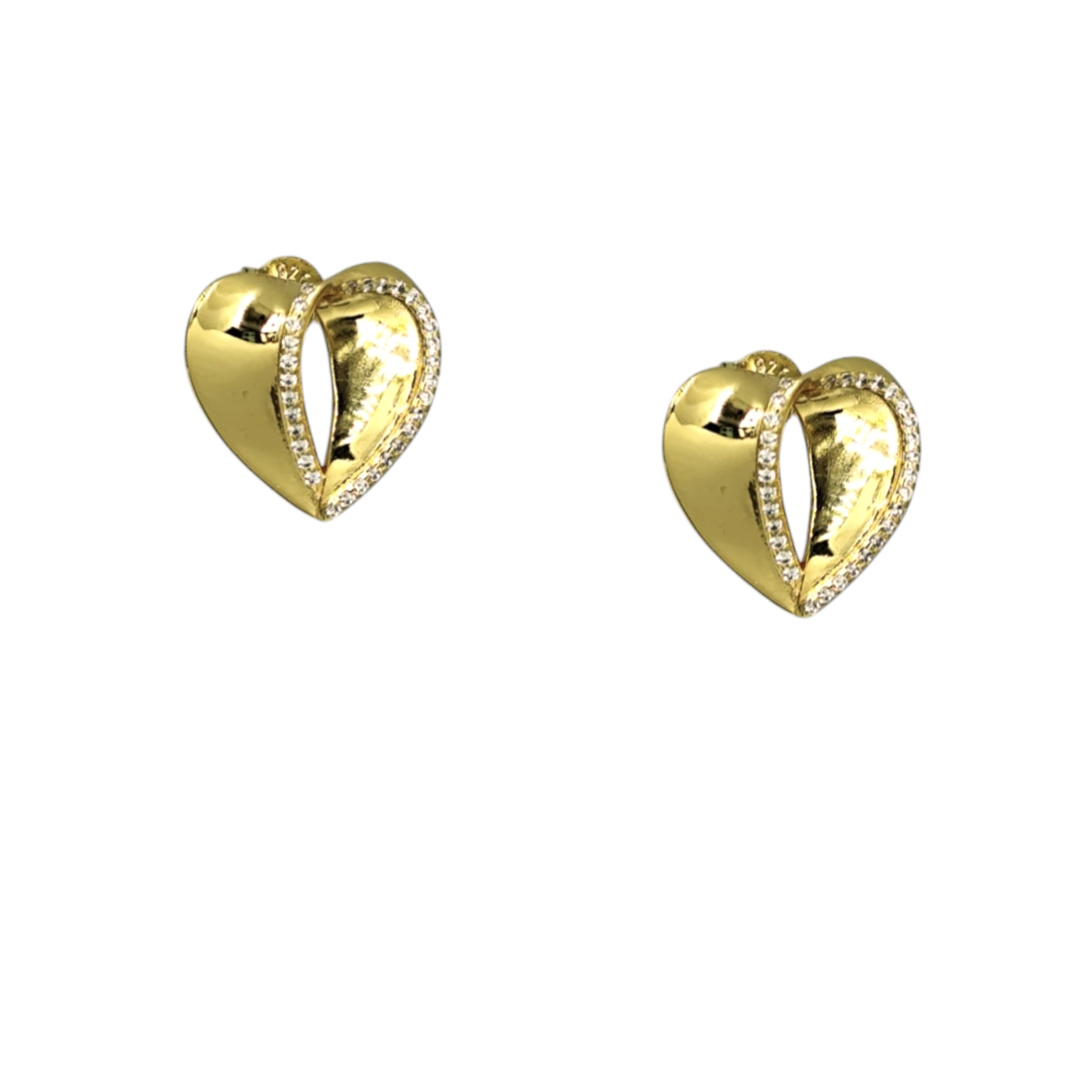 Σκουλαρίκια χρυσά σε σχήμα καρδιάς διακοσμημέν με λευκά ζιγκόν από ασήμι 925° ,ιδανικό κόσμημα για εντυπωσιακές αλλά και καθημερινές εμφανίσεις