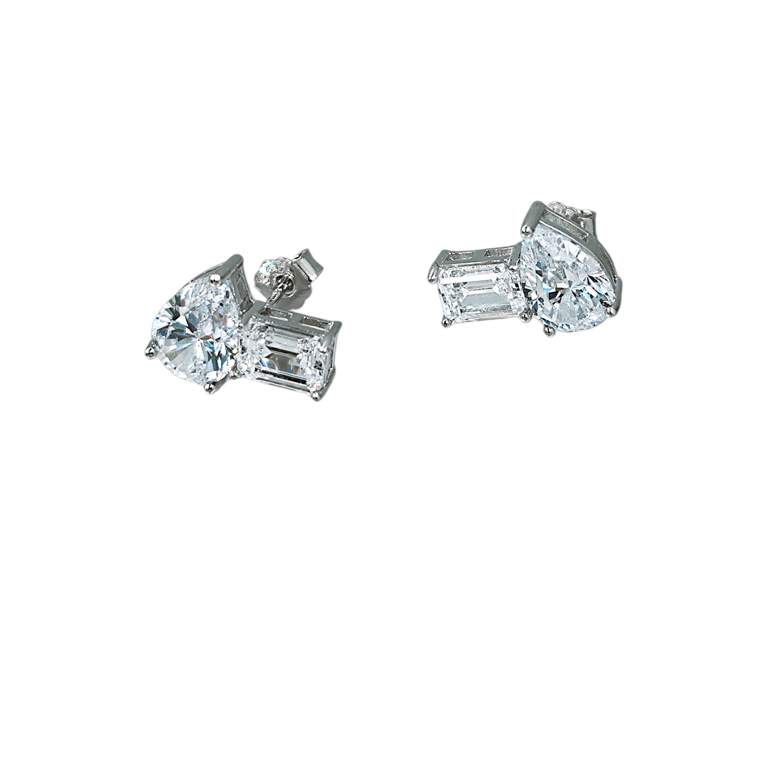 Σκουλαρίκια σε σχήμα σταγόνας και σχήμα emerald με πέτρες ζιργκόν από ασήμι 925°. Ένα εντυπωσιακό κόσμημα που θα σας συνοδεύει καθημερινά.