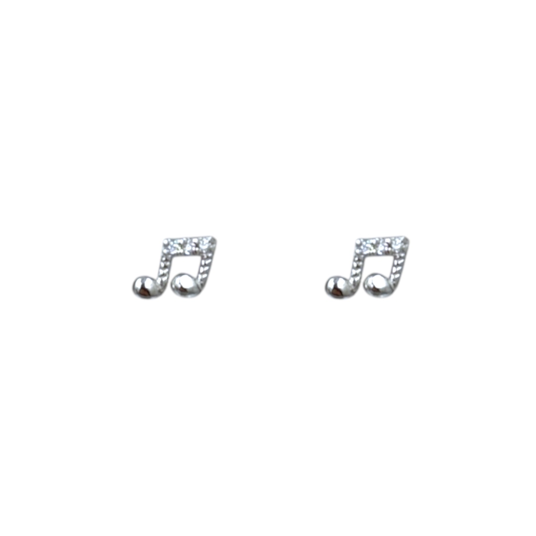 Σκουλαρίκια σε σχήμα νότας διακοσμημένο με λευκά ζιργκόν από ασήμι 925°. Ένα κόσμημα που θα σας συνοδεύει καθημερινά.