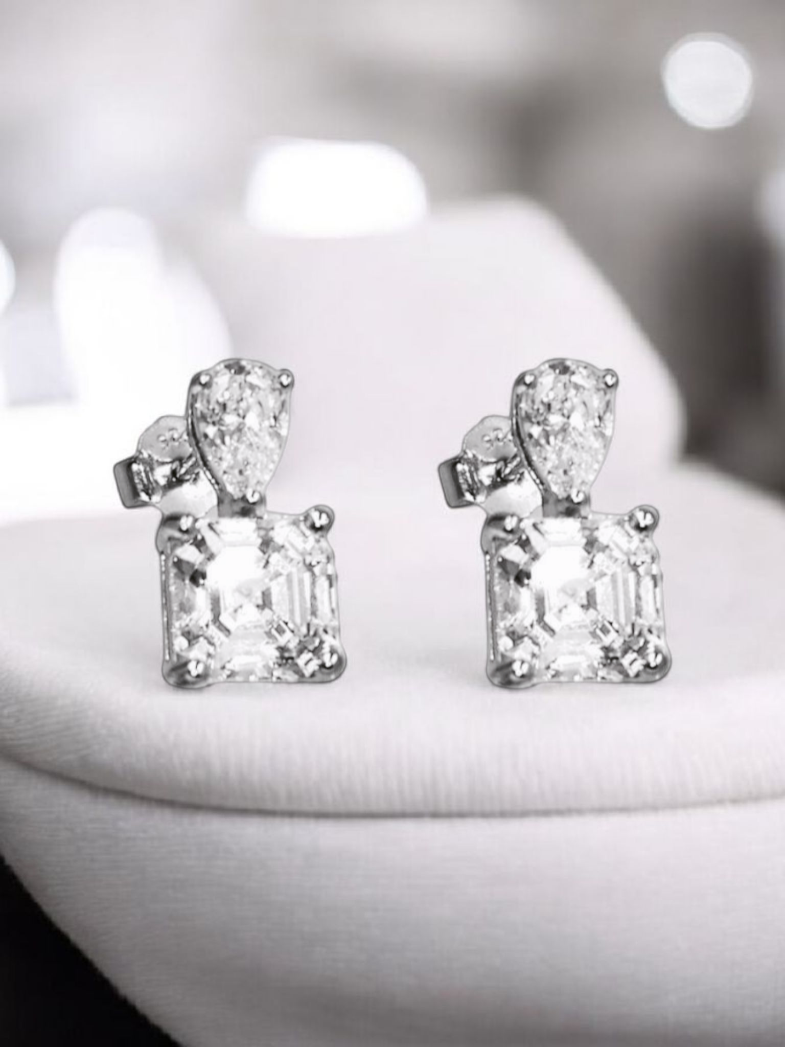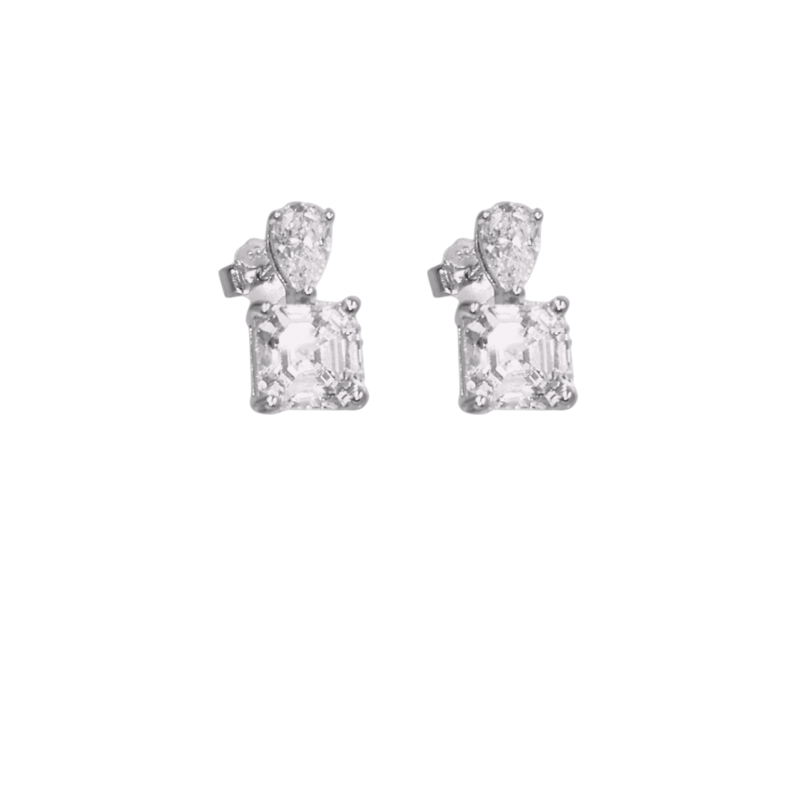 Kολλητά σκουλαρίκια σε τετράγωνο σχήμα με λευκά ζιργκόν και στο πάνω μέρος σε σχήμα σταγόνα πέτρα 925°. Ένα μοντέρνο κόσμημα εξαιρετικής κατασκευής που θα σας συνοδεύει καθημερινά και θα απογειώσει τις εμφανίσεις σας.