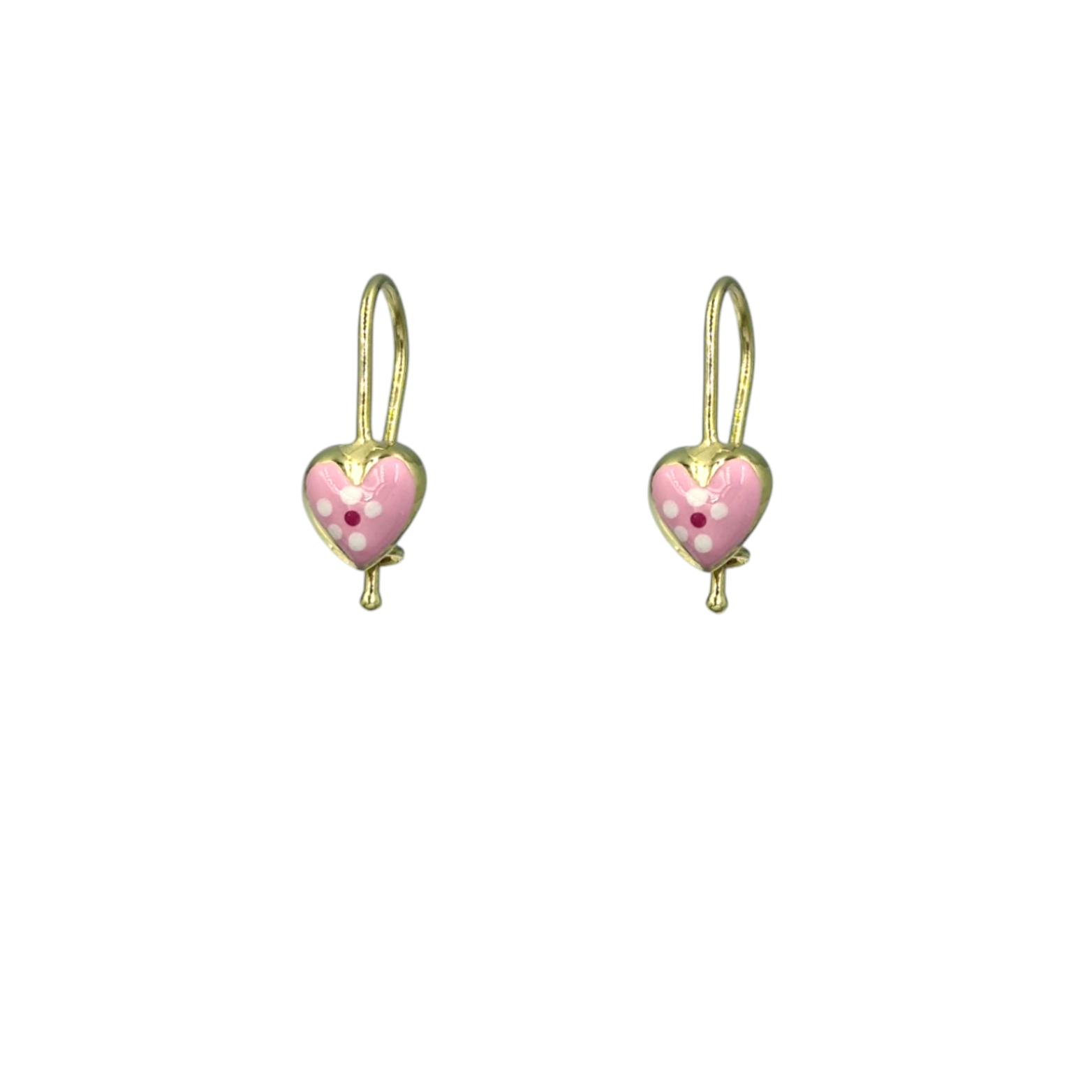 Χρυσά παιδικά κρεμαστά καρδιά με ροζ σμάλτο σε Κ9