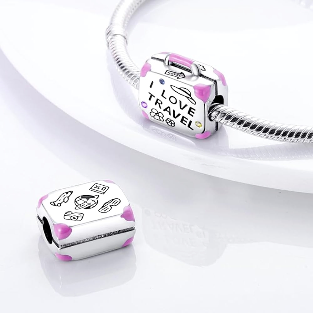 Charm σύμβολο για βραχιόλι από επιπλατινωμένο ασήμι 925° βαλίτσα ταξιδιού διακοσμημένη με σμάλτο. Ένα σύμβολο που σε συνδυασμό με το βραχιόλι, σας δίνει την ευκαιρία να δημιουργήσετε ένα μοναδικό και προσωπικό σύνολο και θα σας κάνει να ξεχωρίζετε. Συμβατό σε βραχιόλι Pandora