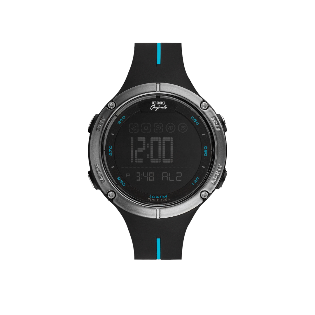 Ανδρικό ρολόι Lee Cooper με ψηφιακό καντράν και μαύρο καουτσούκ λουράκι.. Ιδανικό για sport και casual εμφανίσεις.