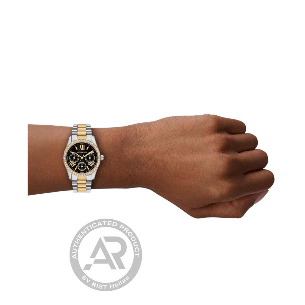 Από την αγαπημένη σειρά LEXINGTON ένα ρολόι με μοναδική φινέτσα, μαύρο καντράν, λευκά ζιργκόν περιμετρικά με χρυσά στοιχεία στο εσωτερικό του και επιχρυσωμένο ανοξείδωτο ατσάλι, του οίκου Michael Kors.